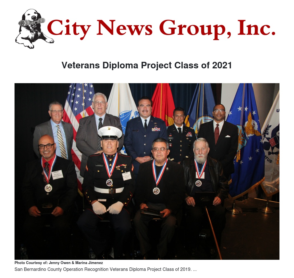 For more information about the program, visit the County Schools Veterans Diploma Project webpage at https://vdp.sbcss.k12.ca.us/ or contact County Schools at 909.386.2406.