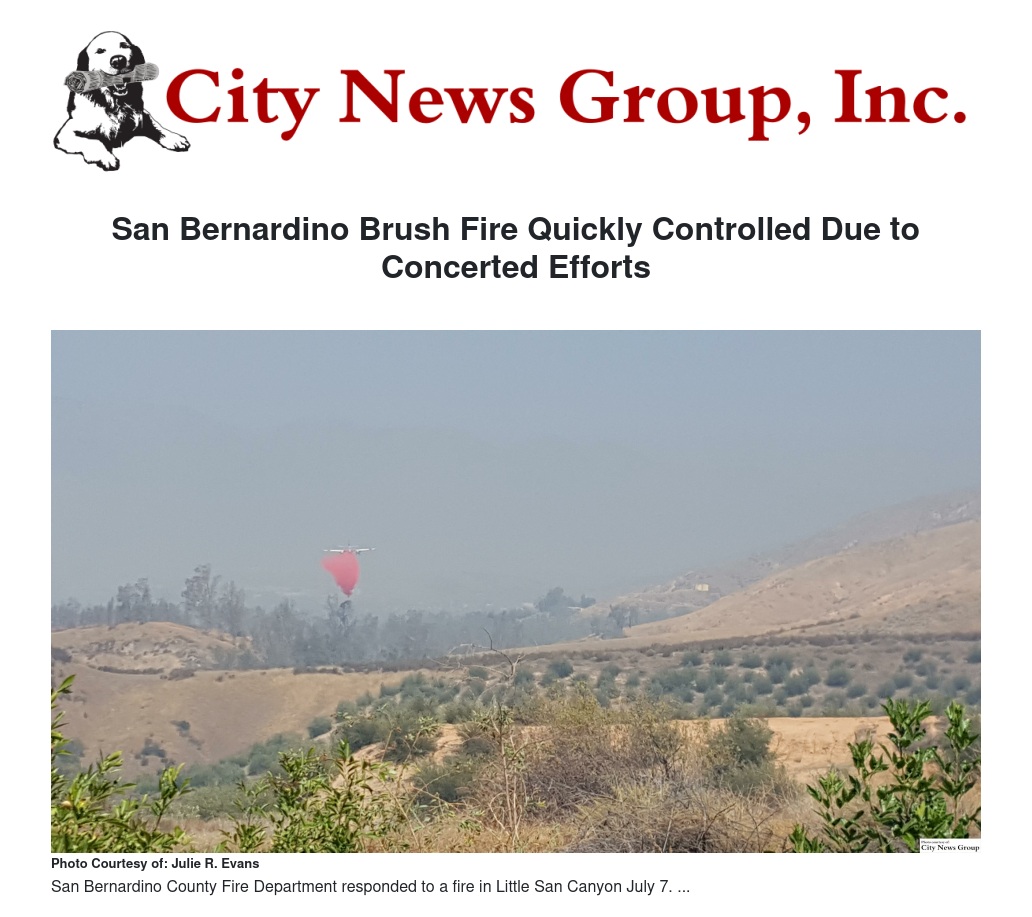 San Bernardino Brush Fire Quickly Controlled Due to Concerted Efforts