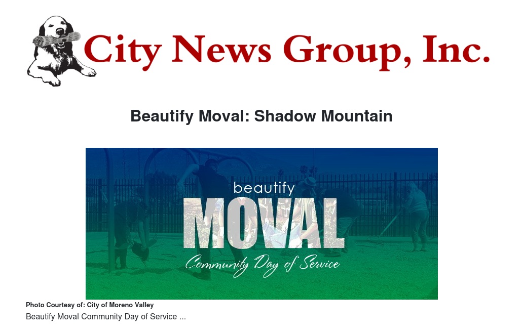 We'll meet in front of Moreno Valley City Hall at 8 a.m. for free coffee, pastries, games, and fun before setting out to Beautify MoVal!