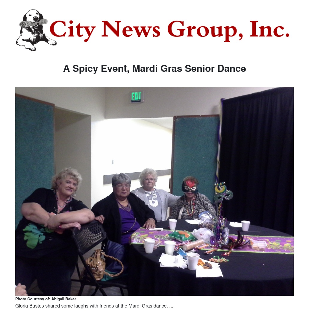 Hostess of The Mardi Gras Senior Dance, Recreation Specialist Janay Sintclair checked in eager seniors from Hutton Community Center in the city of Colton. The seniors were dancing to the tunes of the band, Latin Flavor. Sitting next to her godparents, Gloria Bustos who has been a resident of Colton her whole life was enjoying the fun with her family and friends.