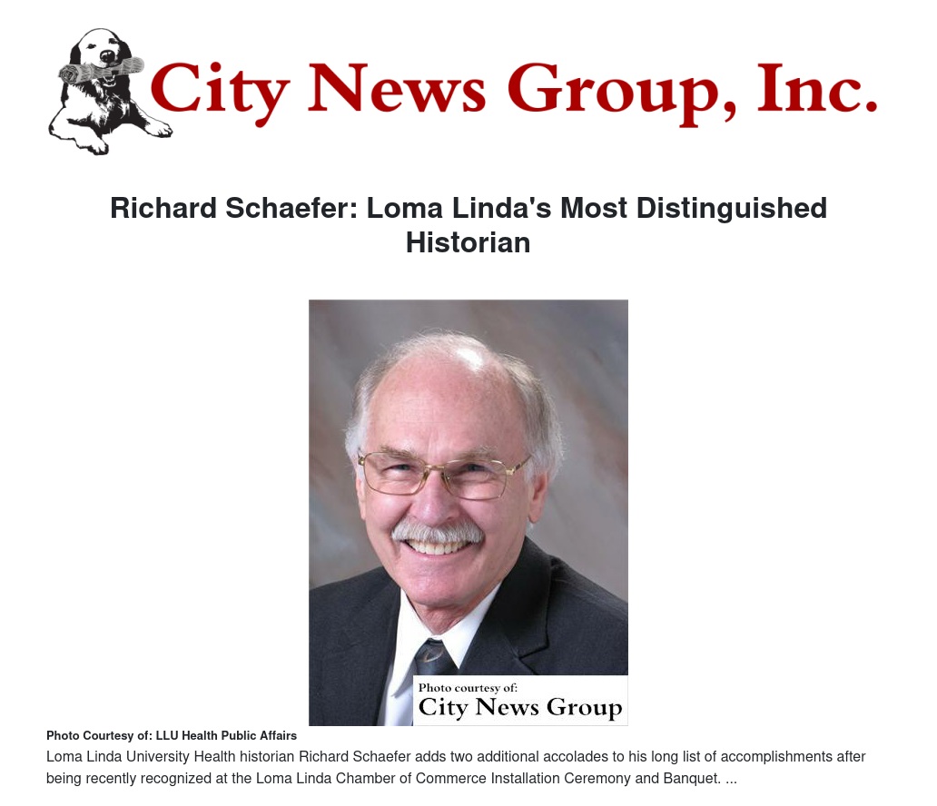 Adding to a long list of accomplishments and lifetime accolades, Loma Linda University historian Richard Schaefer was recognized by the Loma Linda Chamber of Commerce and the Loma Linda City News for his distinguished contributions to the city and achievements.