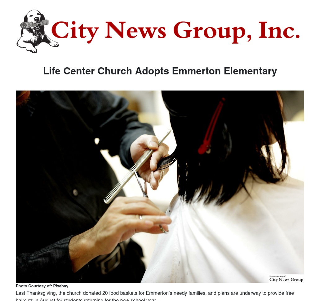 Last Thanksgiving, the church donated 20 food baskets for Emmerton’s needy families, and plans are underway to provide free haircuts in August for students returning for the new school year.