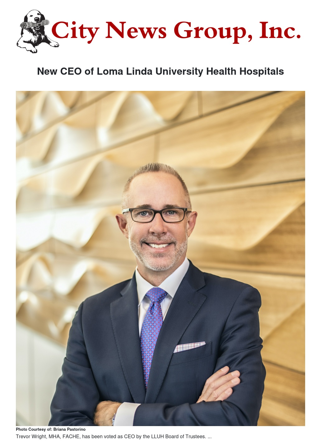 Loma Linda University Health Board of Trustees has voted to appoint Trevor Wright, MHA, FACHE, to serve as chief executive officer for Loma Linda University Health Hospitals.