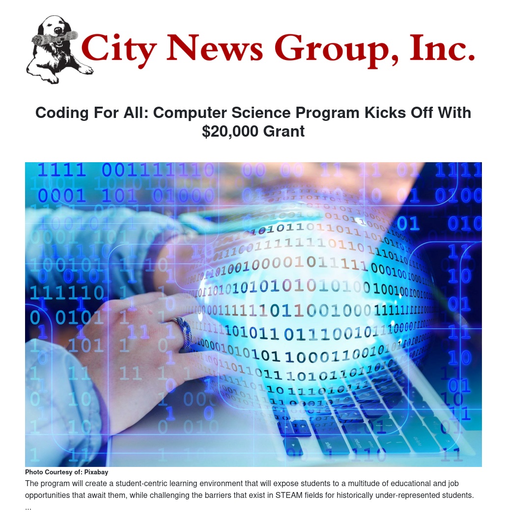 The grant will fund a coding class and club at each elementary, middle and high school in the district. Each participating teacher will receive professional development training in coding and will have opportunities to showcase their work and students’ work at regional, state and national conferences.
