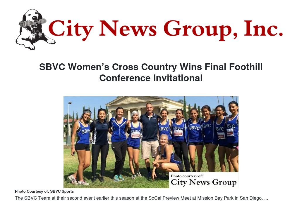 SBVC ran in their fourth event of the 2015 season at the Foothill Conference Invitational at the San Bernardino Soccer Complex, winning the event by scoring 47 points with sophomore Fernanda Rodriguez (Jurupa Valley Rubidoux) leading the way finishing the 5000 meter course in 3rd place with a time of 19:04.