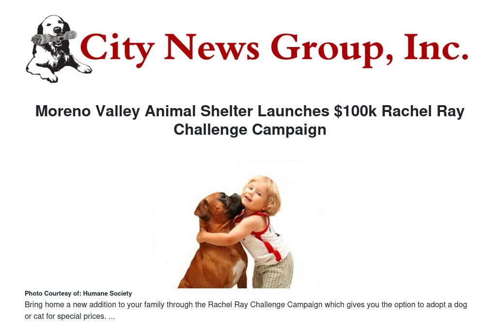 Moreno Valley Animal Shelter Launches $100k Rachel Ray Challenge Campaign