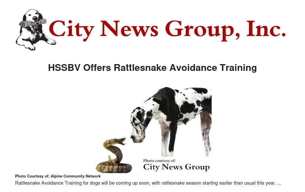 The Humane Society of San Bernardino Valley will be hosting Rattlesnake Avoidance Training on Friday, May 8 at their facility starting at 9 a.m.