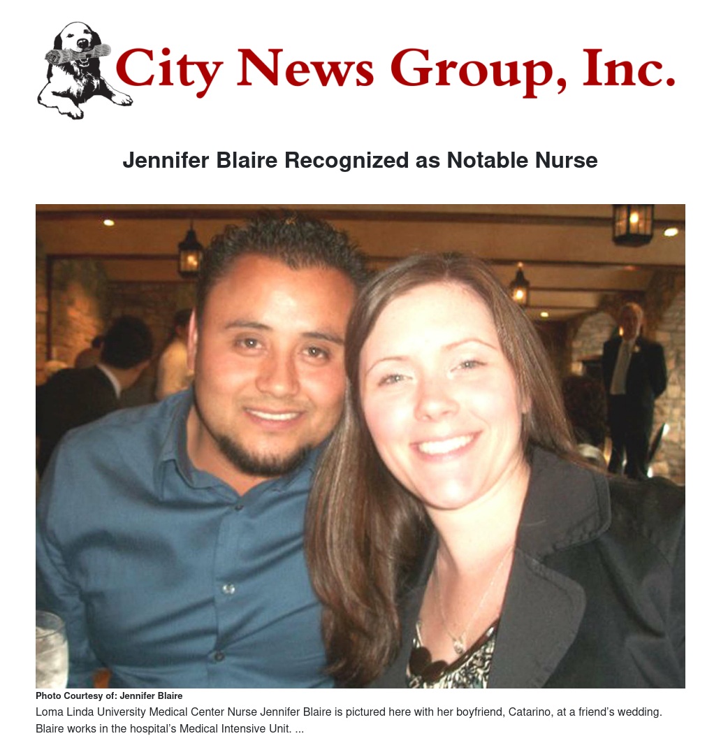Day after day, Beaumont resident Jennifer Blaire gets the opportunity to help others and make them well. For her dedication to her career and to her kindness to her patients, Blaire, 29, was recently recognized by California State Senator Bill Emmerson (R-Redlands) and California State Assemblyman Mike Morrell (R-Rancho Cucamonga) as one of Loma Linda University Medical Center’s (LLUMC) Notable Nurses.