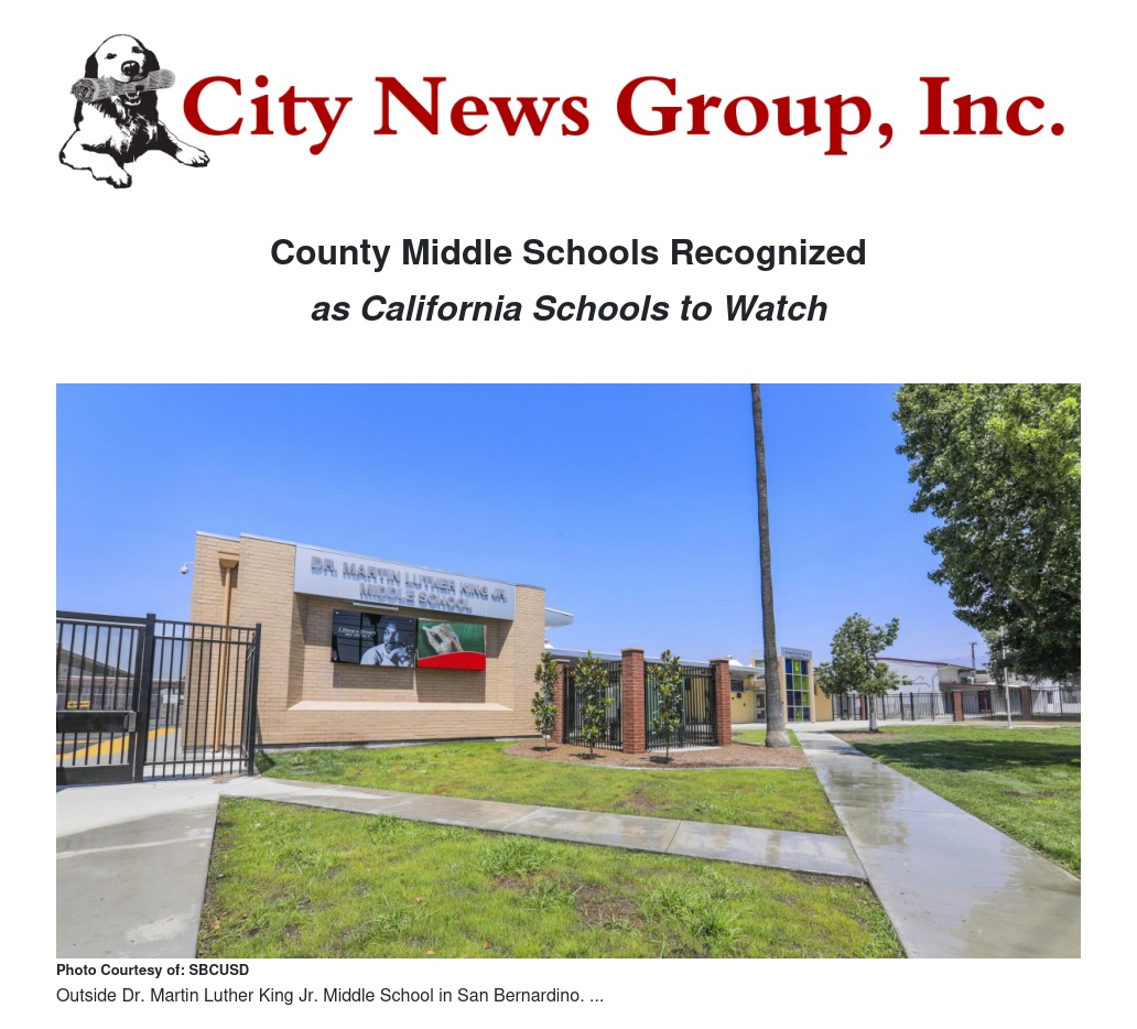 San Bernardino County Superintendent of Schools is pleased to announce four middle schools in San Bernardino County have been re-designated as 2022 “California Schools to Watch.”
