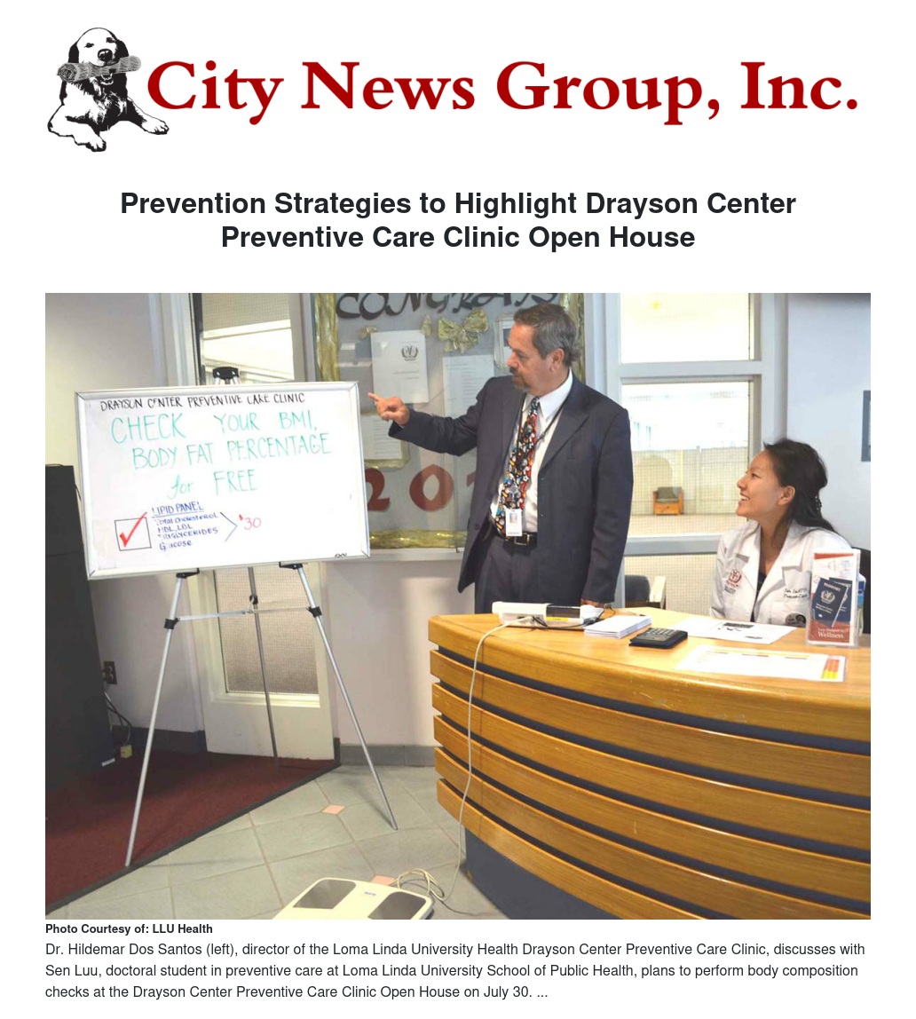 “We are inviting the public to an open house for a unique type of clinic, where there are no medical tests, pills, or prescriptions,” said Dr. Hildemar Dos Santos, assistant professor in the Preventive Care Program at Loma Linda University School of Public Health and director of the Drayson Center Preventive Care Clinic.