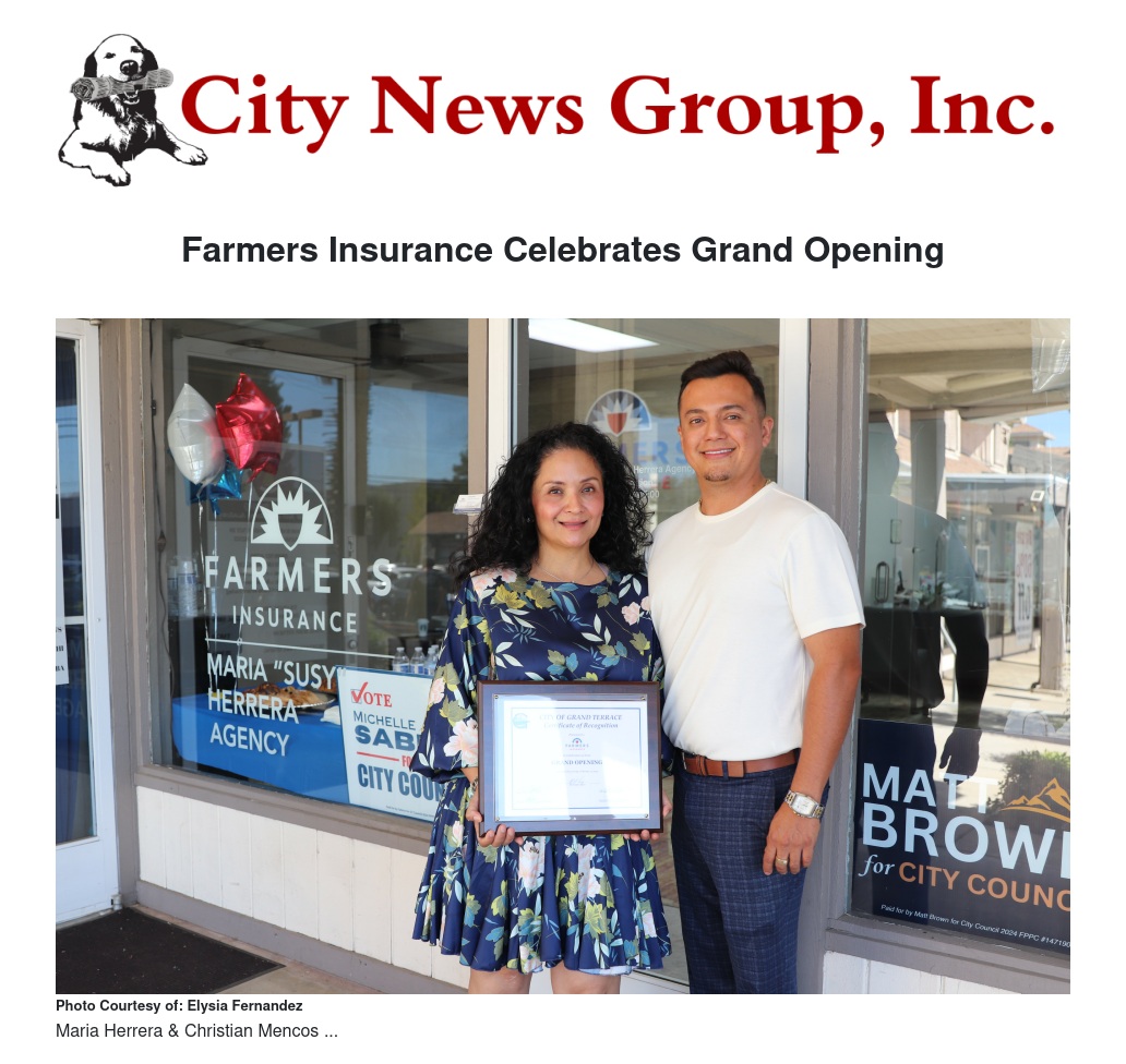 Located at 22400 Barton Road, Herrera recently celebrated the grand opening of her Farmers Insurance office, marking a new chapter in her career and community involvement. Her dedication to serving Grand Terrace extends beyond insurance, as she has also joined the Grand Terrace Chamber of Commerce, further integrating herself into the local business community.