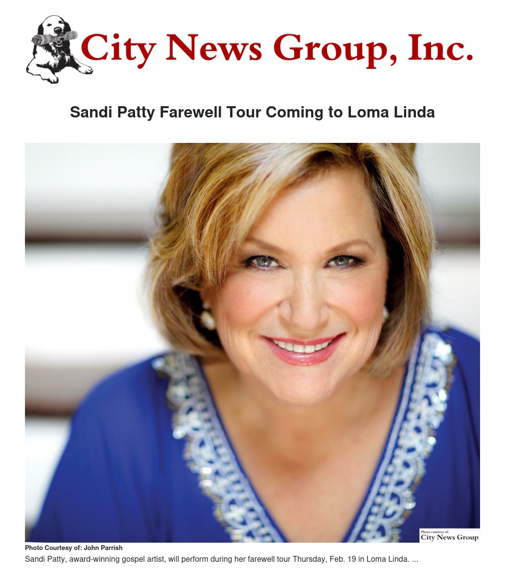 Sandi Patty’s appearance at Loma Linda University Church is the only scheduled Inland Empire stop on her national farewell tour, “Forever Grateful,” according to Dr. Bob Soderblom, coordinator for the performance. Concert tickets are now available online or by a toll-free telephone call to the farewell tour producers, Soderblom says.