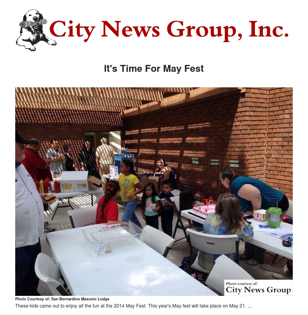 SAN BERNARDINO >> On Saturday, May 21, from 11:00 a.m. until 2:00 p.m., The San Bernardino Masonic Lodge will hold its second annual May Fest from 11 a.m. until 2 p.m. on Saturday, May 21 at Wilson Elementary School. The event is free and open to the general public.