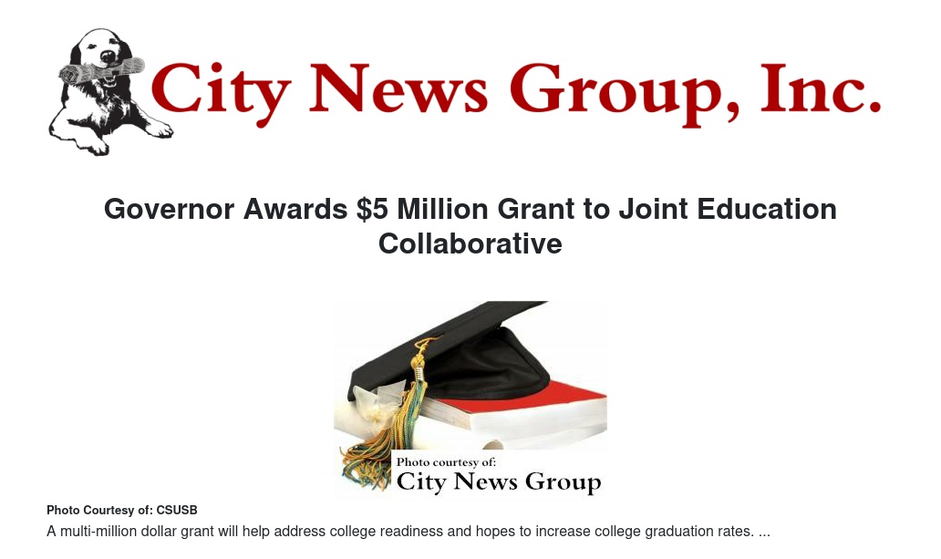 An education collaborative formed by Cal State San Bernardino and the University of California, Riverside – consisting of the Inland Empire Economic Partnership, the Coachella Valley Economic Partnership, community colleges, school districts, local governments and businesses in San Bernardino and Riverside counties – has received a $5 million Governor’s Award for Innovation in Higher Education.