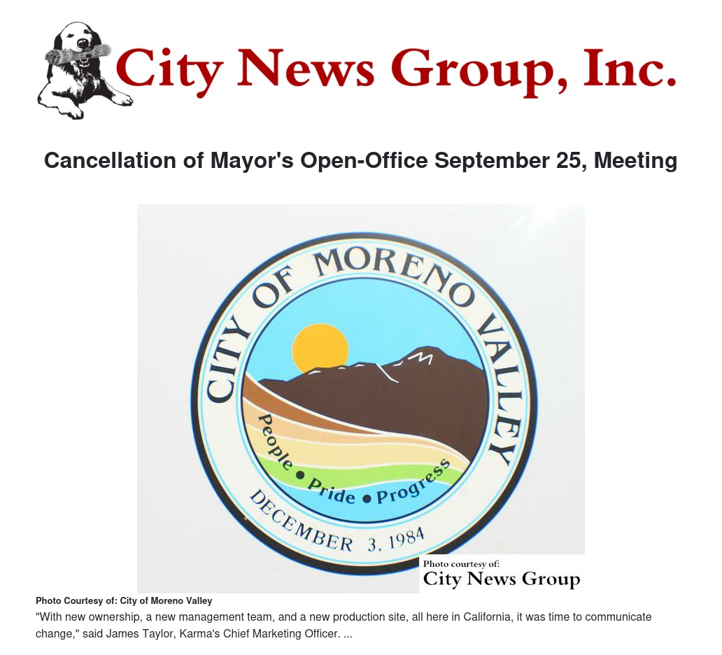 Information about these and other meetings can be obtained by calling the city council office at 951-413-3008.