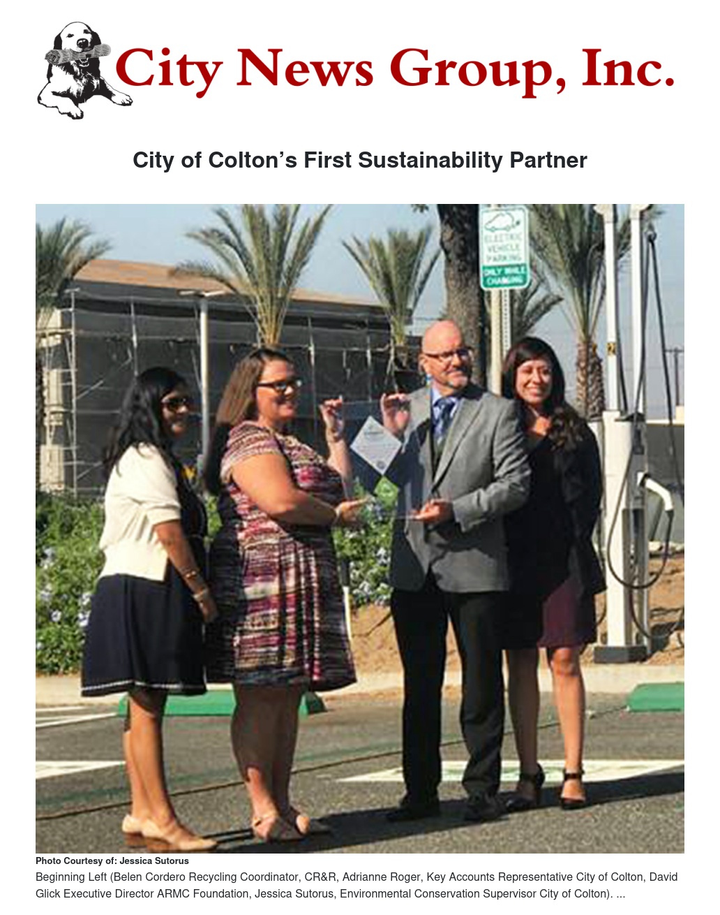 Arrowhead Regional Medical Center (ARMC) is the first Sustainability Partner with the City of Colton for their leadership in organics recycling. Working with the City’s Recycling Coordinator, Belen Cordero of CR&R, the Hospital has developed an exemplary program in organics recycling. In honor of their Outstanding Efforts, Adrianne Rogers their key account representative, presented ARMC staff the Recycling sustainability award plaque.