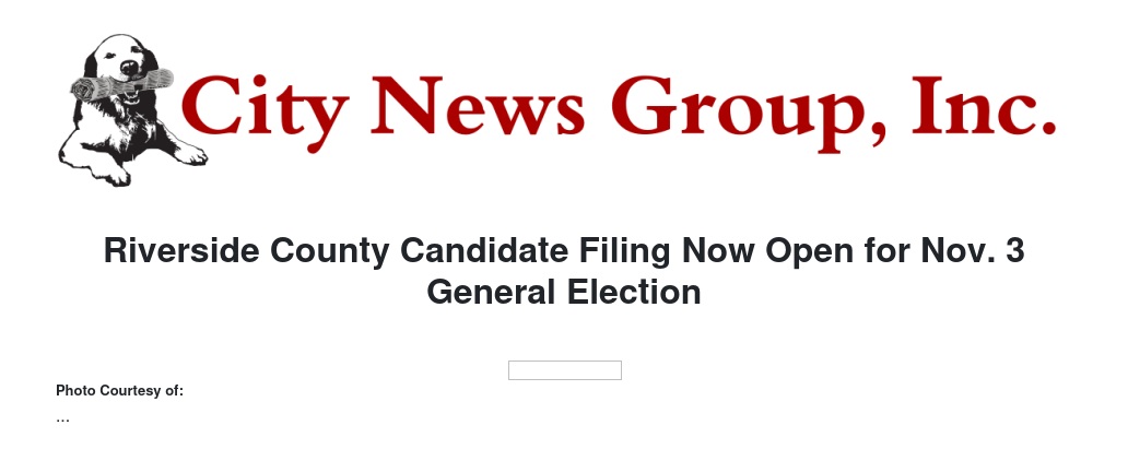 Riverside County Candidate Filing Now Open for Nov. 3 General Election