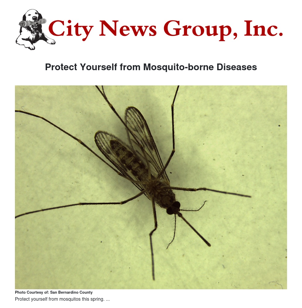 Protect Yourself from Mosquito-borne Diseases by Sarah Wells - City News Group, Inc.
