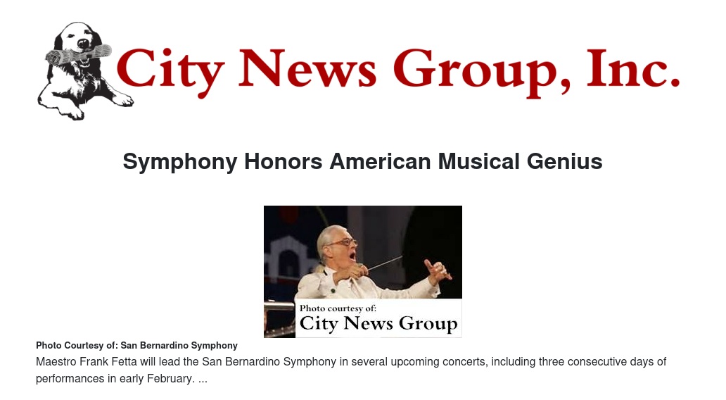 Music lovers in the Inland Empire will have plenty of chances to enjoy the arts in February with three consecutive days of uniquely American fare performed by the San Bernardino Symphony as part of the current season's "By Request: The Music You Want to Hear" theme.