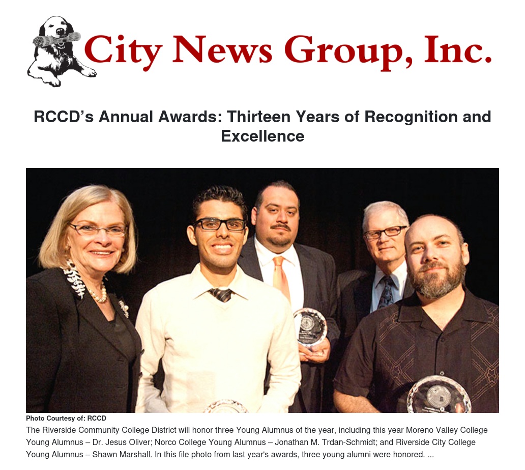 • Riverside City College Young Alumnus — Shawn Marshall, International Baccalaureate Program coordinator, Norte Vista High School, Alvord Unified School District