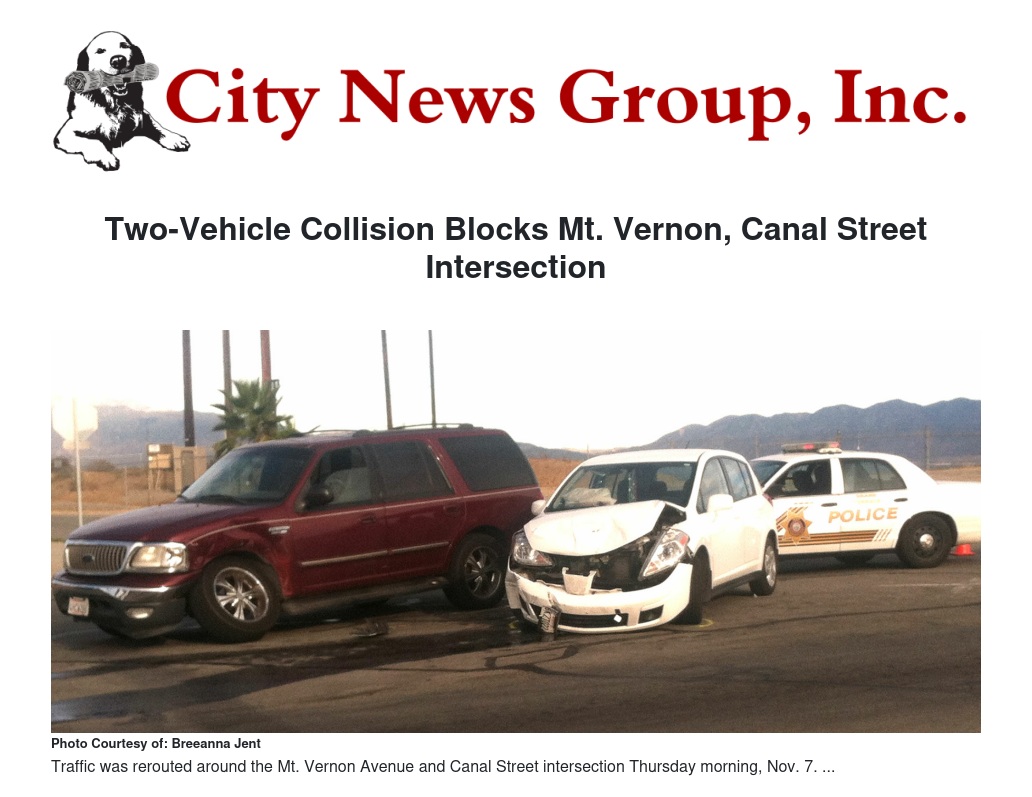 Two-Vehicle Collision Blocks Mt. Vernon, Canal Street Intersection