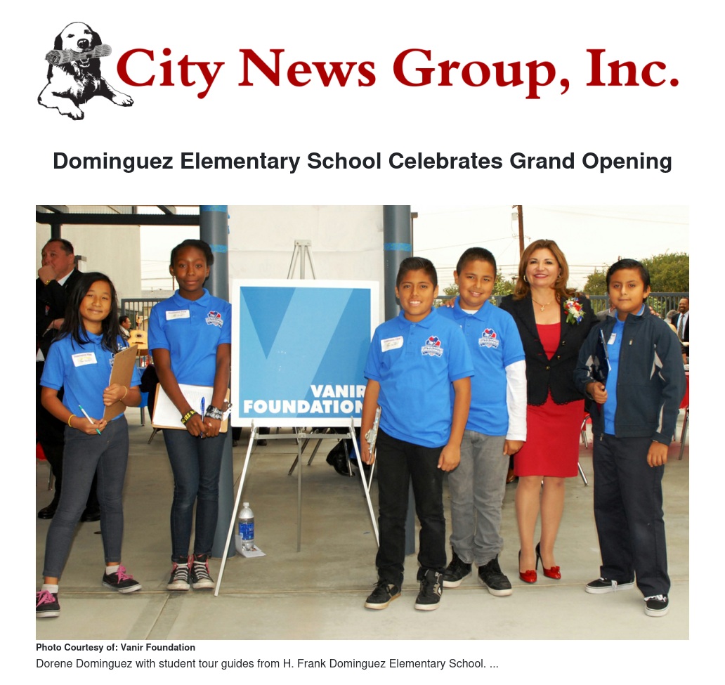 The Vanir Foundation announced their partnership with H. Frank Dominguez Elementary School. As stated by Ms. Dominguez, “Since its inception in 2004, the Vanir Foundation has helped thousands of students by bringing academic enrichment programs to our partner schools.”