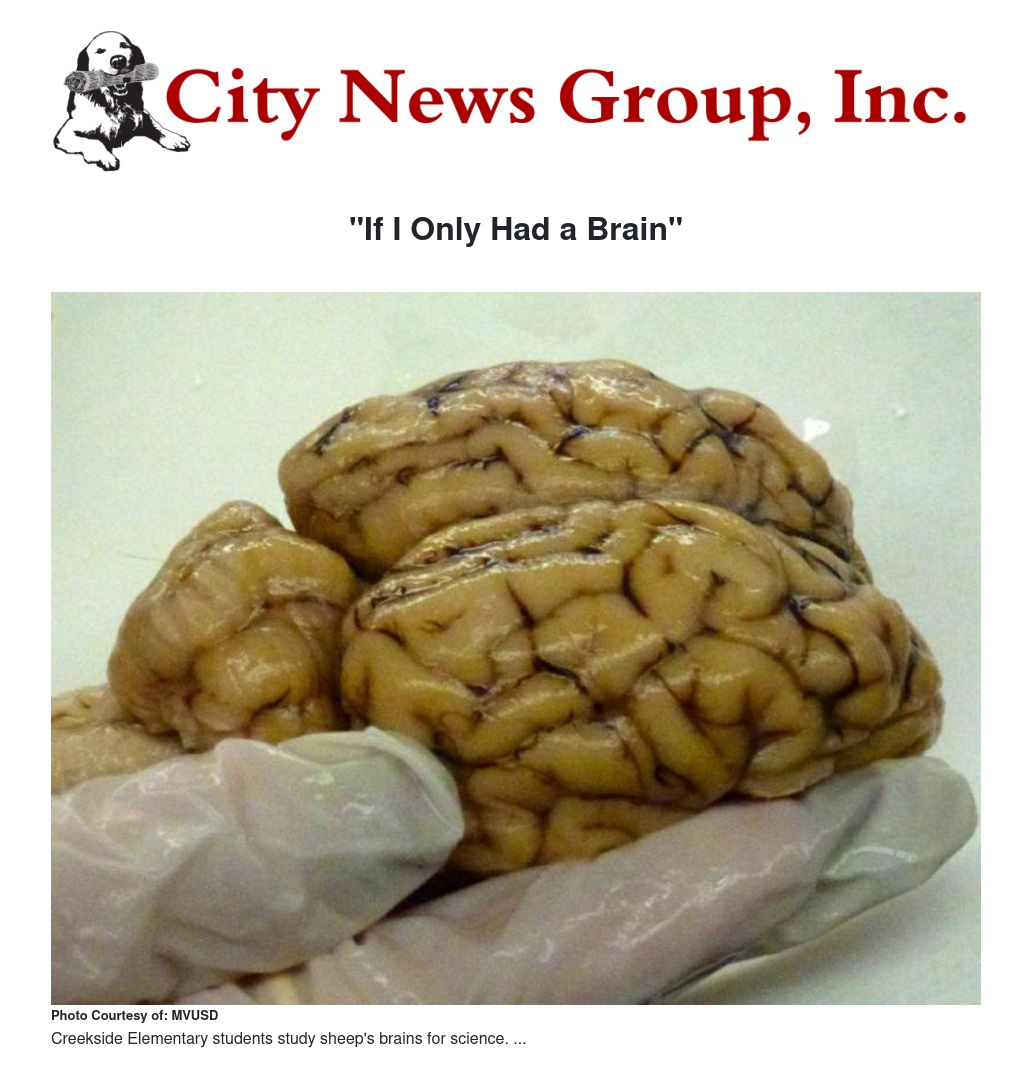 They studied sheep's brains, which are remarkably similar to the much larger human brain. After getting over the "eeeyyoouu!" factor, students got to identify the various parts of the brain they had learned about, and even got a look inside the organ. By the end of the lesson, students had moved from "eeeyyoouu!" to "wow!"