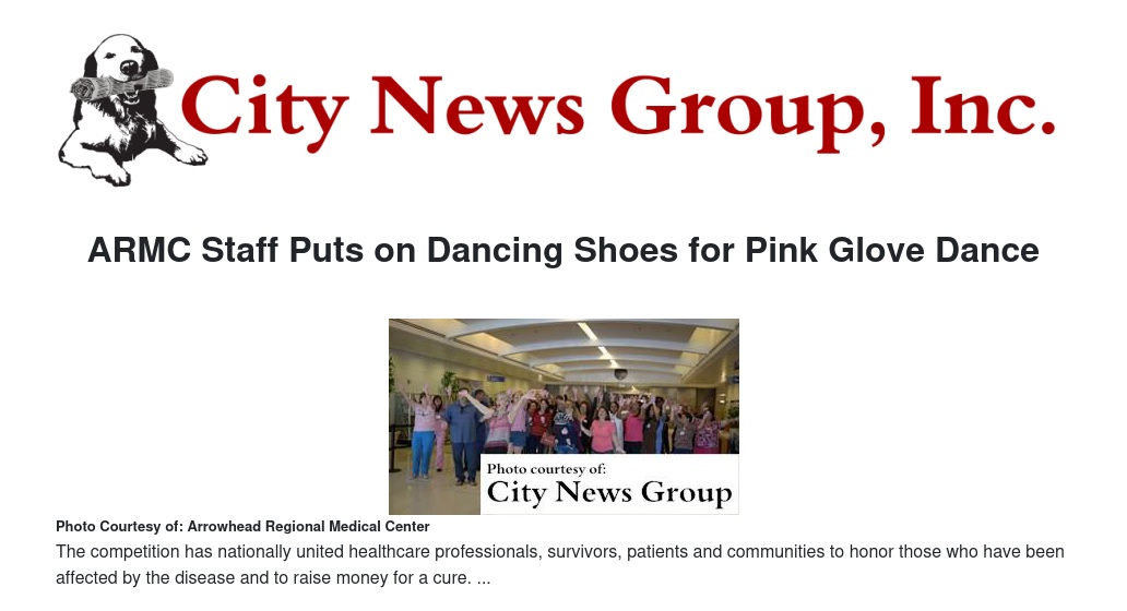 COLTON>> Arrowhead Regional Medical Center has entered the sixth annual 2016 Medline Pink Glove Dance Video competition in support of breast cancer awareness and to raise money for charity.