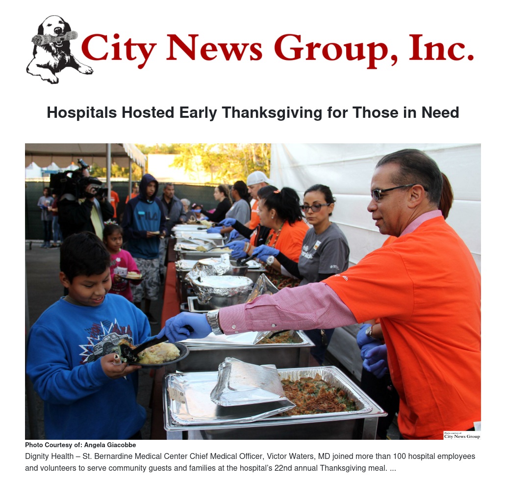“Thanksgiving is one time of the year when we are able to reach out into the community to show compassion and set the tone for the holiday season. For 22 years, our Thanksgiving outreach has been part of our ministry in San Bernardino demonstrating how we live out our core values of dignity, collaboration and justice,” said Linda McDonald, Dignity Health Southern California Service Area Vice President of Mission Integration. “We care about the communities that we serve and this is just one of the ways that we show it.”