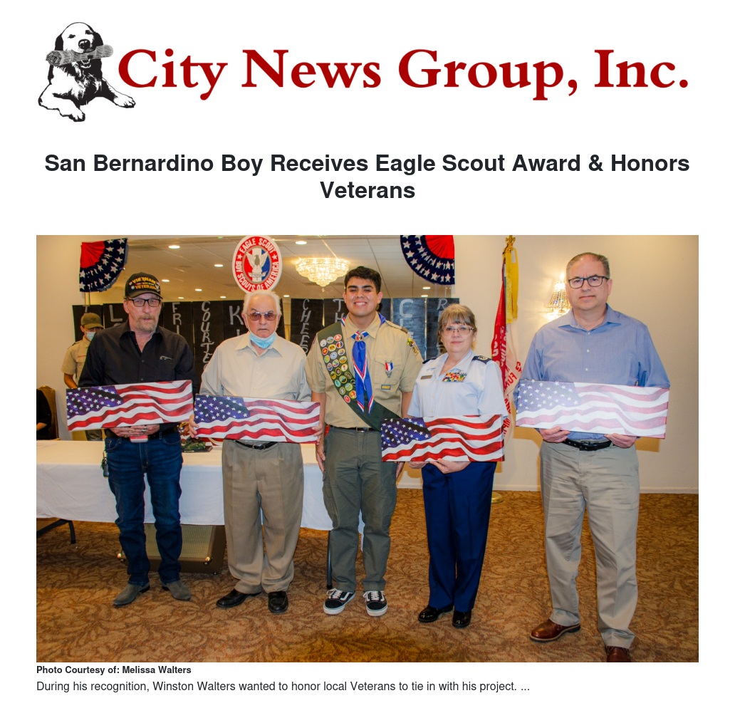 San Bernardino Boy Receives Eagle Scout Award & Honors Veterans by Melissa Walters - City News Group, Inc.
