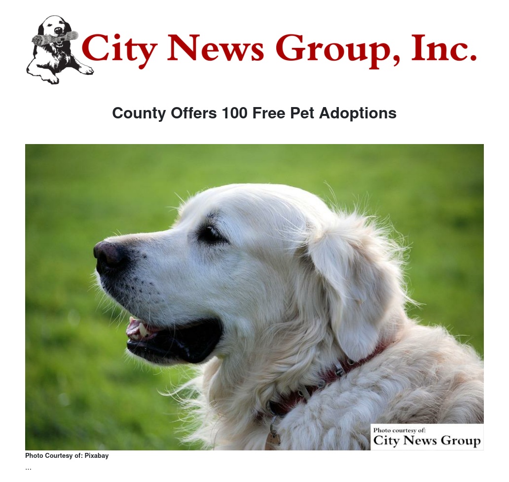 County Offers 100 Free Pet Adoptions