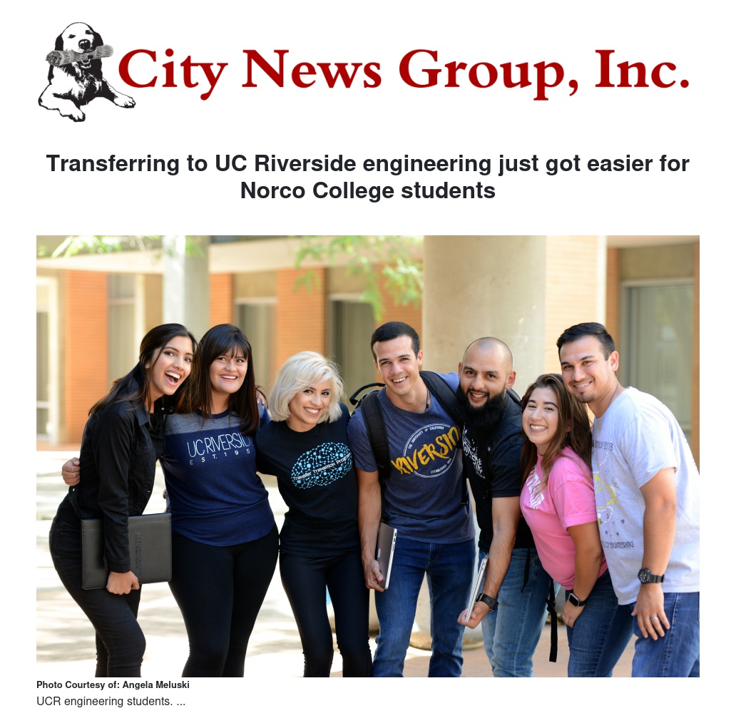 The Marlan and Rosemary Bourns College of Engineering (BCOE) at UC Riverside and Norco College will sign a memorandum of understanding March 13 that smooths the pathway for transfer students in engineering. The agreement ensures students will arrive at UC Riverside well prepared to enter the third year of an engineering major, and that their Norco College course credits are transferred.