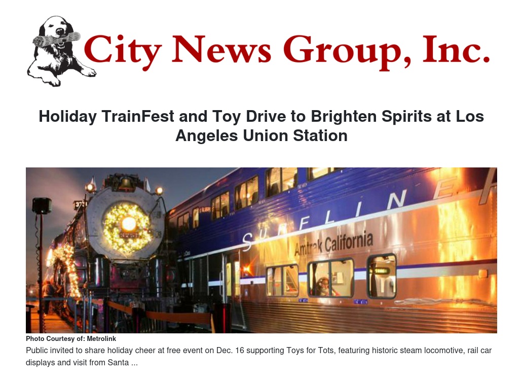 Holiday TrainFest and Toy Drive to Brighten Spirits at Los Angeles Union Station by Chris Gutierrez - City News Group, Inc.