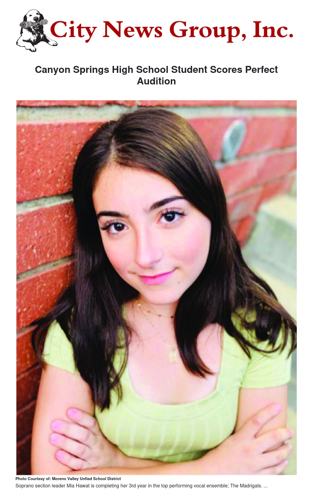 Canyon Springs High School Student Scores Perfect Audition by Anahi Velasco - City News Group, Inc.