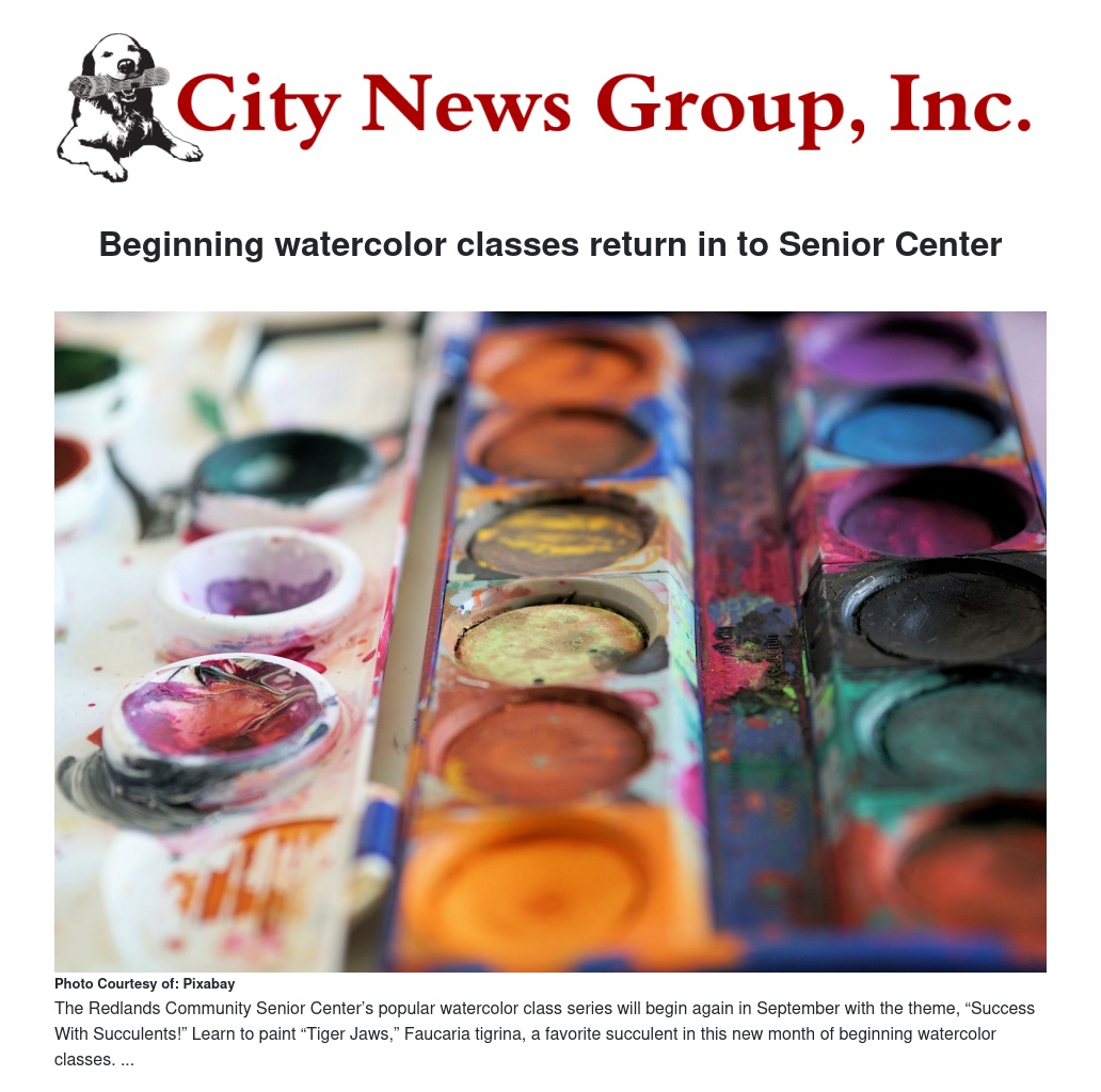 The Redlands Community Senior Center’s popular watercolor class series will begin again in September with the theme, “Success With Succulents!” Learn to paint “Tiger Jaws,” Faucaria tigrina, a favorite succulent in this new month of beginning watercolor classes.
