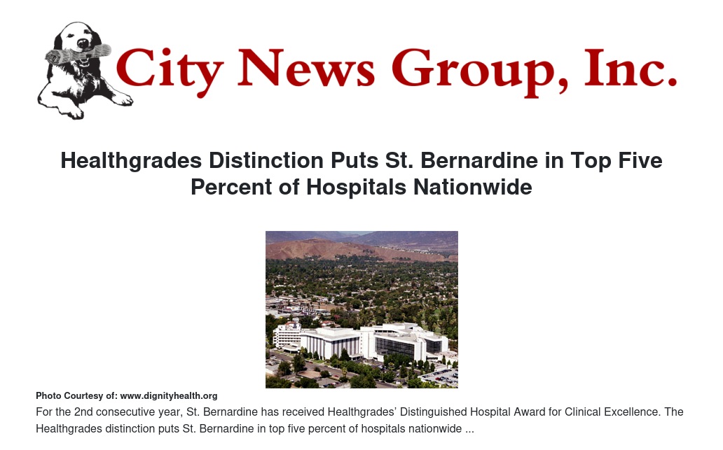 St. Bernardine Medical Center is one of only 260 award recipients nationwide. According to Healthgrades, what differentiates Distinguished Hospital Award recipients, like St. Bernardine, is that they demonstrate clinical excellence across a broad spectrum of care. "It’s great to be recognized as a leader in quality patient care, but it’s not the recognition that counts. It’s the difference it makes in the lives of our patients,” Barron added.