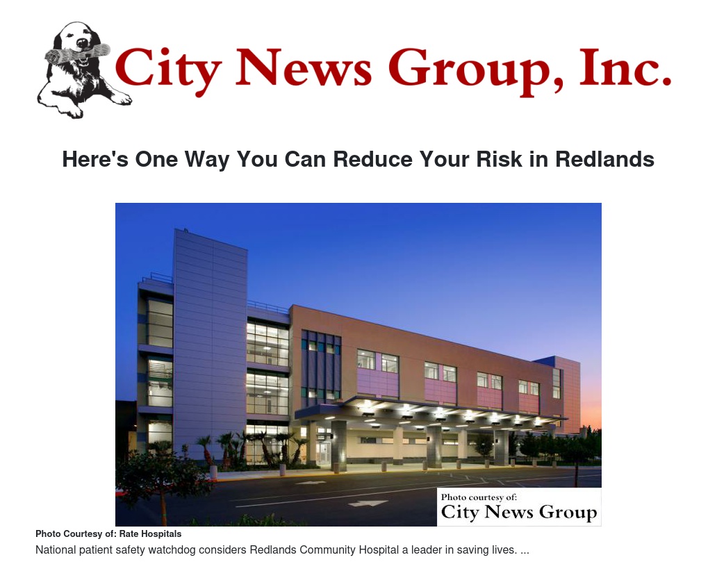 Redlands Community Hospital received an A, ranking among the safest hospitals in the United States. Redlands Community Hospital is the only hospital in San Bernardino County to receive an ‘A’ grade.
