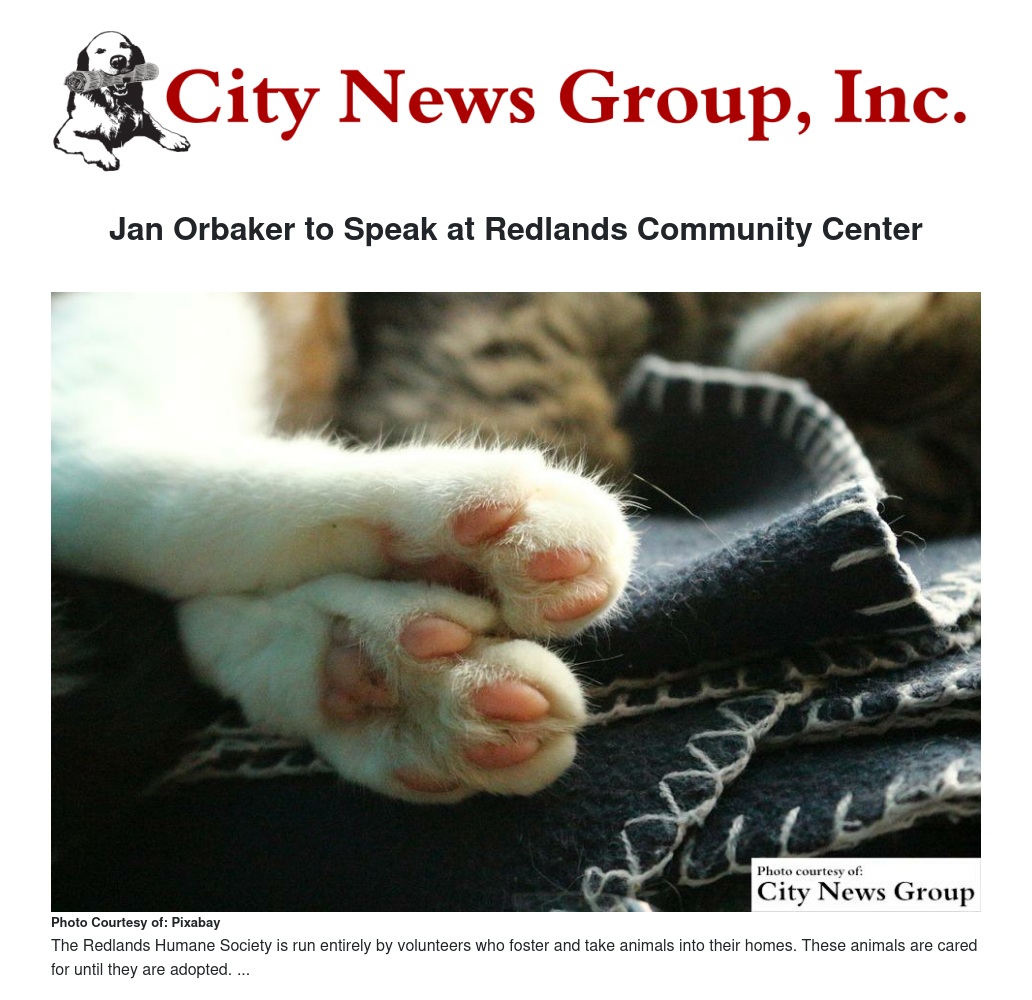 REDLANDS>> On April 10, guest speaker Jan Orbaker, the director of the Redlands Humane Society, spoke at the Redlands Community Senior Center's Desert and Dialogue program.
