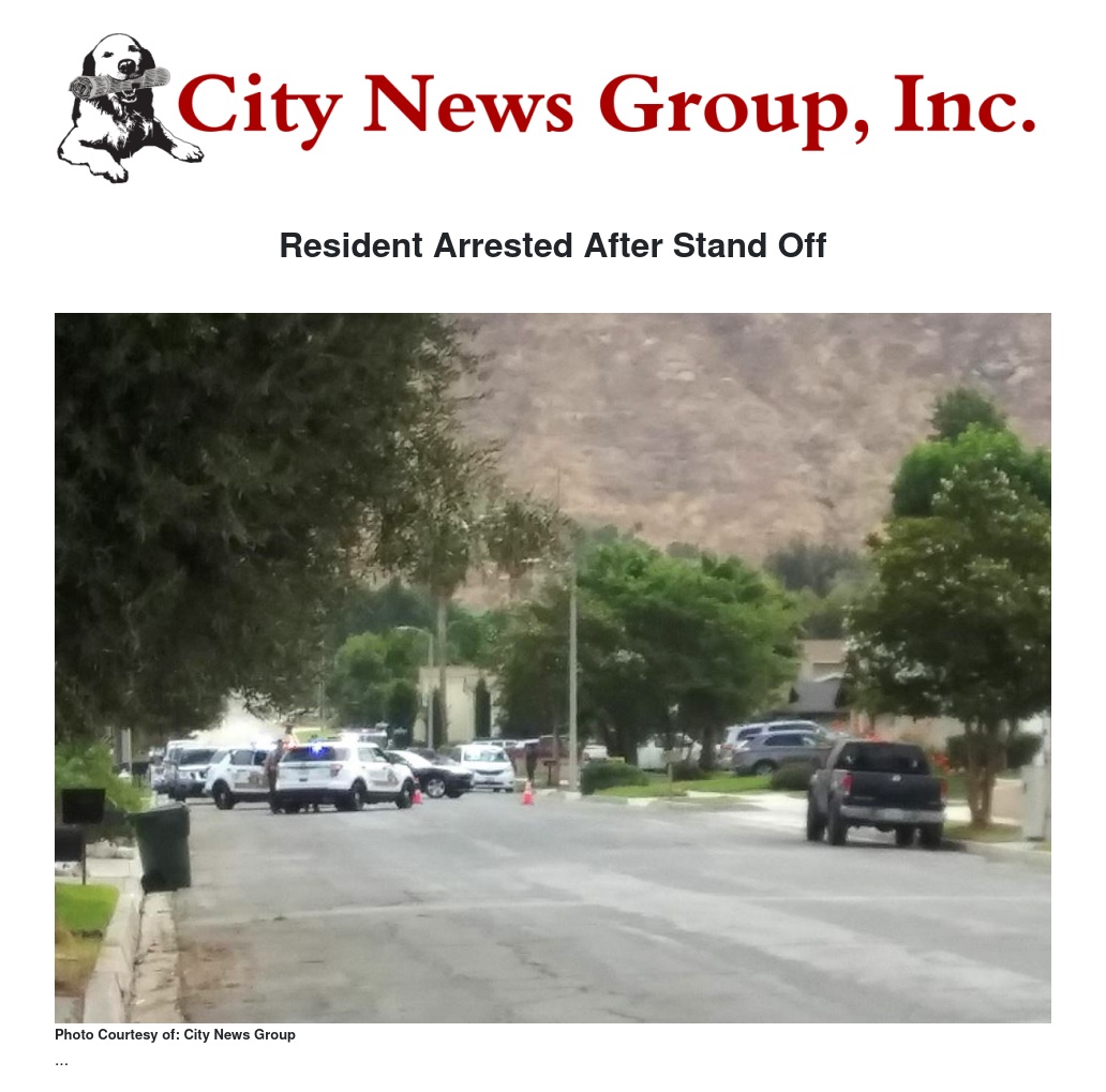 Resident Arrested After Stand Off by Detective J. Cavender - City News Group, Inc.