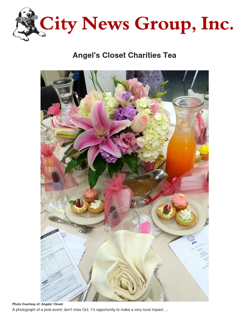 Angels’ Closet Charities has scheduled their annual fund raising tea at Martha Green’s “The Eating Room” in Redlands for Oct. 28, 29, and 30 from 4-6 p.m.