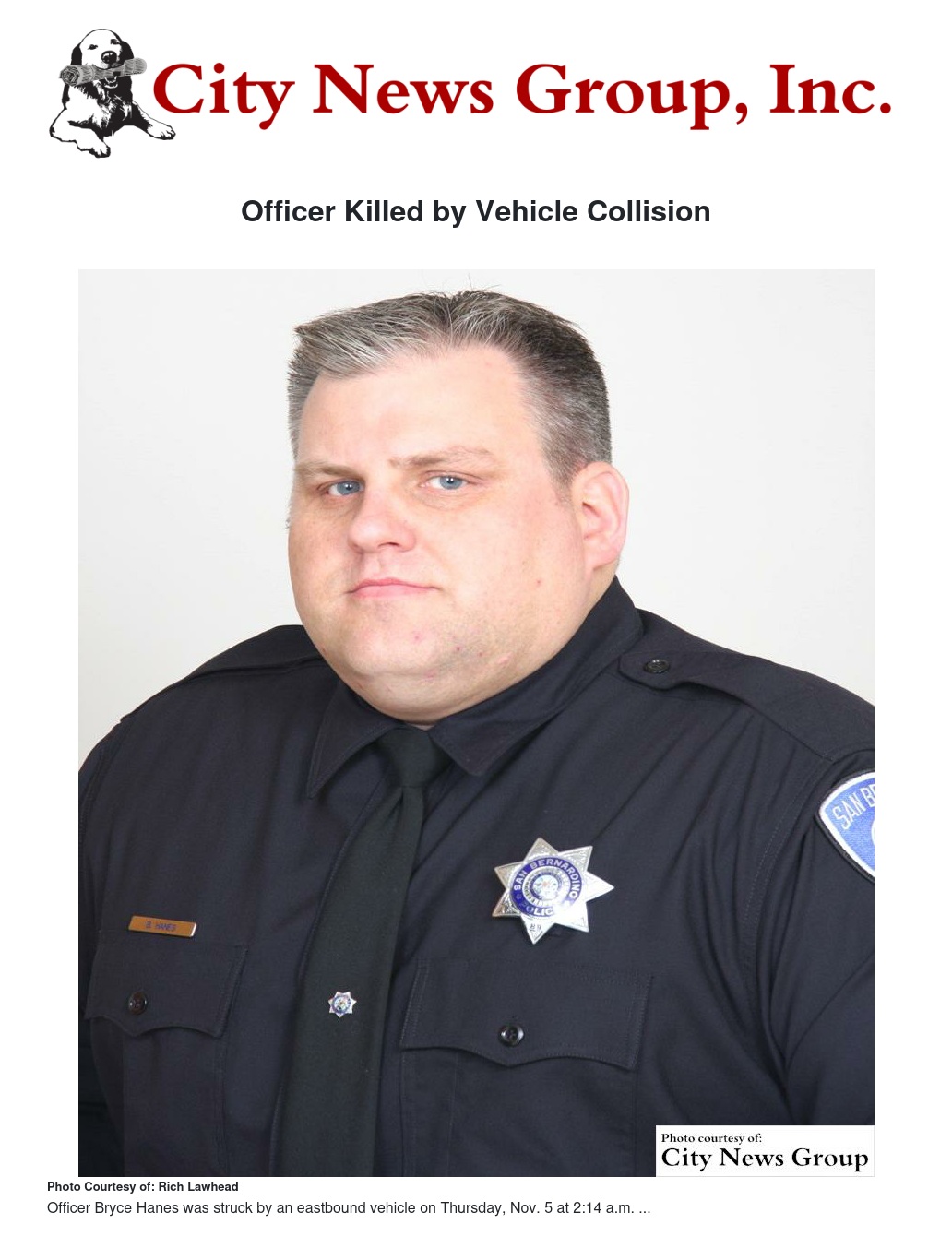 Officer Hanes is a 12-year veteran and leaves behind a wife and three small children. However, the family is supported by a very strong religious network, as well as the San Bernardino Police Department family network.