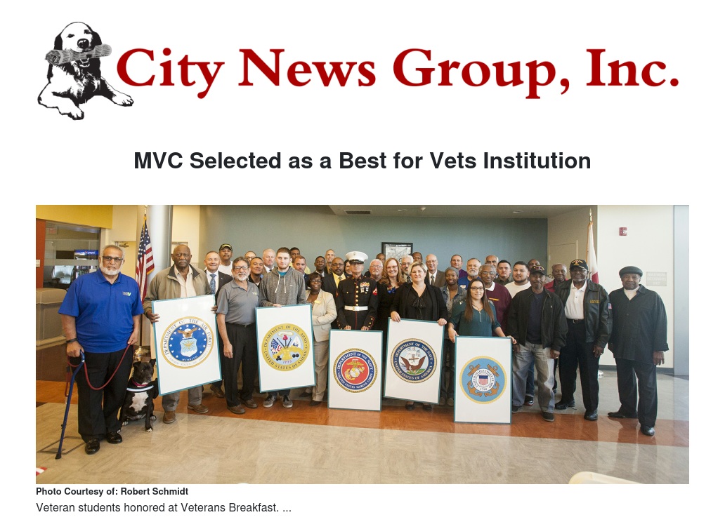 Moreno Valley College (MVC) was selected as one of 208 higher education institutions from across the nation as Best for Vets by the Military Times, an independent source for news and information for military members and their families.