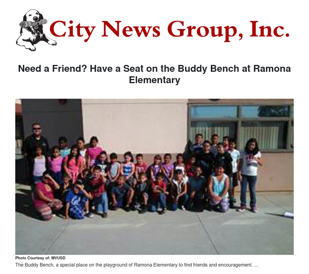 Students at Ramona Elementary in need of a friend now know just where to go to find one: the Buddy Bench.