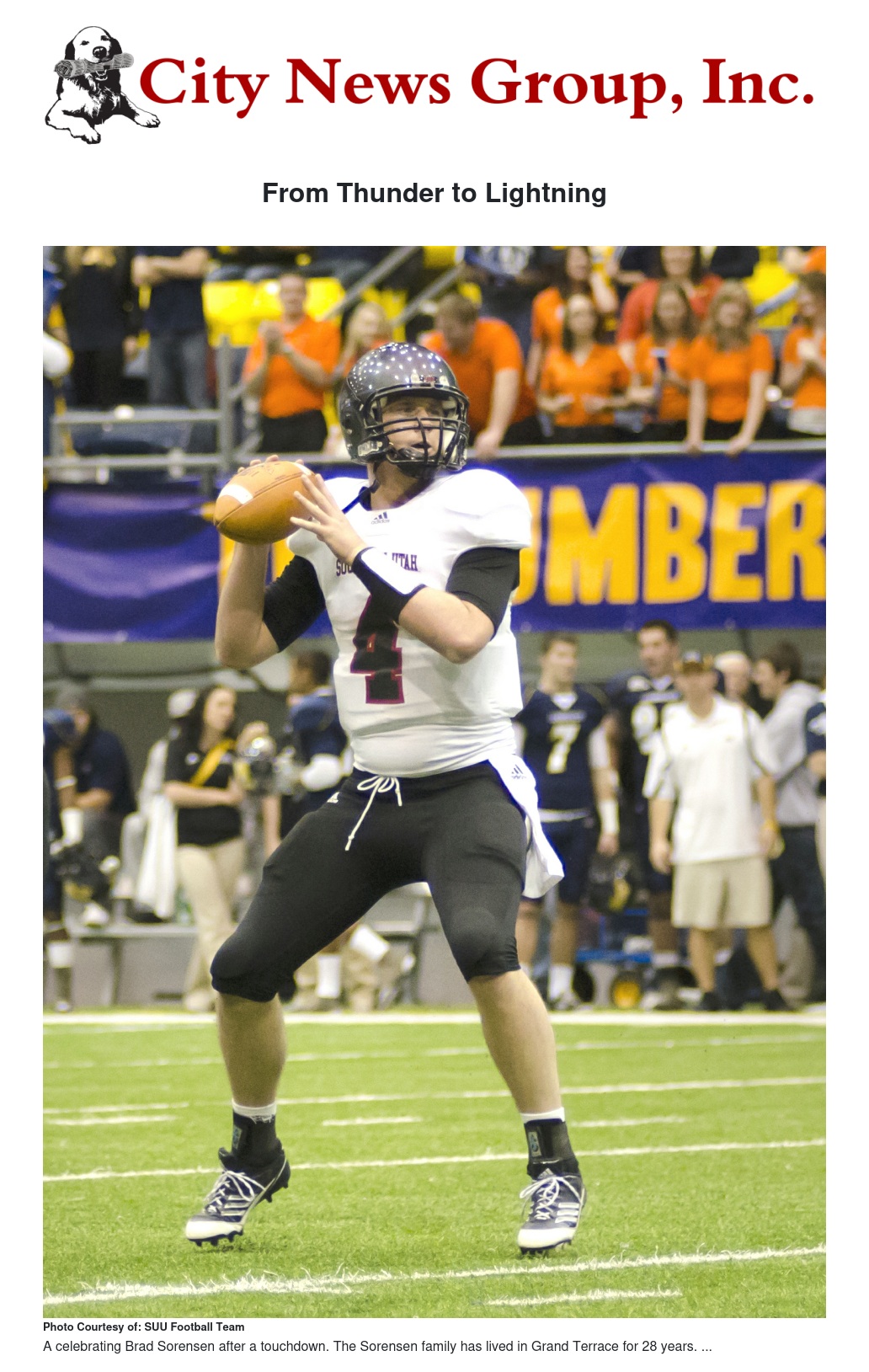 The saga of a 5′ 8″ 140-pound Grand Terrace ninth grader known as Bradley (Brad) Sorensen trying to make the Colton High School freshman football team to a 6′ 5″ 230-pound 3rd string quarterback (presently) for the San Diego Chargers has been one of triumph over adversity. Sorensen had never played football until he tried out for the team during his freshman year at Colton High School (CHS) in 2002 and soon found out that the quickness and evasiveness he learned under the instruction of his father, Kory Sorensen, while playing league soccer would provide him the basic skills needed to play the position of quarterback in high school. Of course, having a gifted right throwing arm didn’t hurt either.