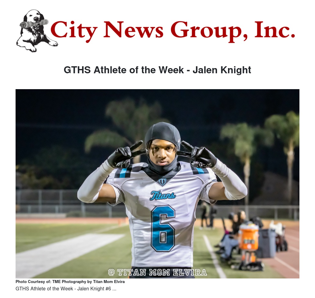 Jalen Knight, a 17 year old Senior at Grand Terrace High School, is a model student-athlete with a commendable 3.5 GPA. Jalen has consistently stayed on track, making a name for himself as an accomplished Titan both on the field and in the classroom.