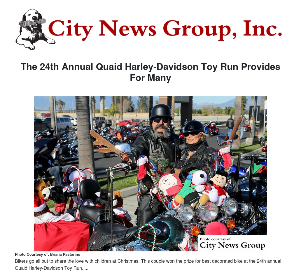 LOMA LINDA>> More than 200 motorcycles and approximately 400 motorcycle riders helped make the 24th annual Quaid Harley-Davidson Toy Run a success once again on Sunday, Dec. 18.
