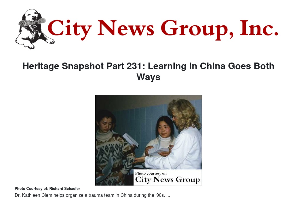 In a report to the July 1998 Annals of Emergency Medicine, Clem and her colleagues reported: “On return visits to (Sir Run Run Shaw Hospital) evidence of refined resuscitation practices demonstrated by improved patient assessment and stabilization techniques could be seen. In addition, there was an enhancement of trauma skills, particularly in airway management. Airway management skills now include rapid-sequence intubation and spinal immobilization."