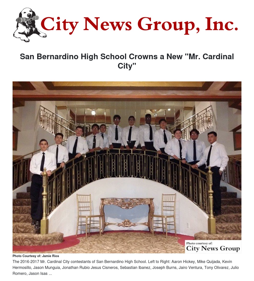 While there are no specific requirements for participating in Mr. Cardinal City, other than a student must be a junior so he can reign during his senior year, Rios said there are some general standards they stick to. The student must be on track to graduate, have good attendance, have a GPA of 3.0 or better and be in good disciplinary standing with the school because Mr. Cardinal City represents the community in the name of San Bernardino High.