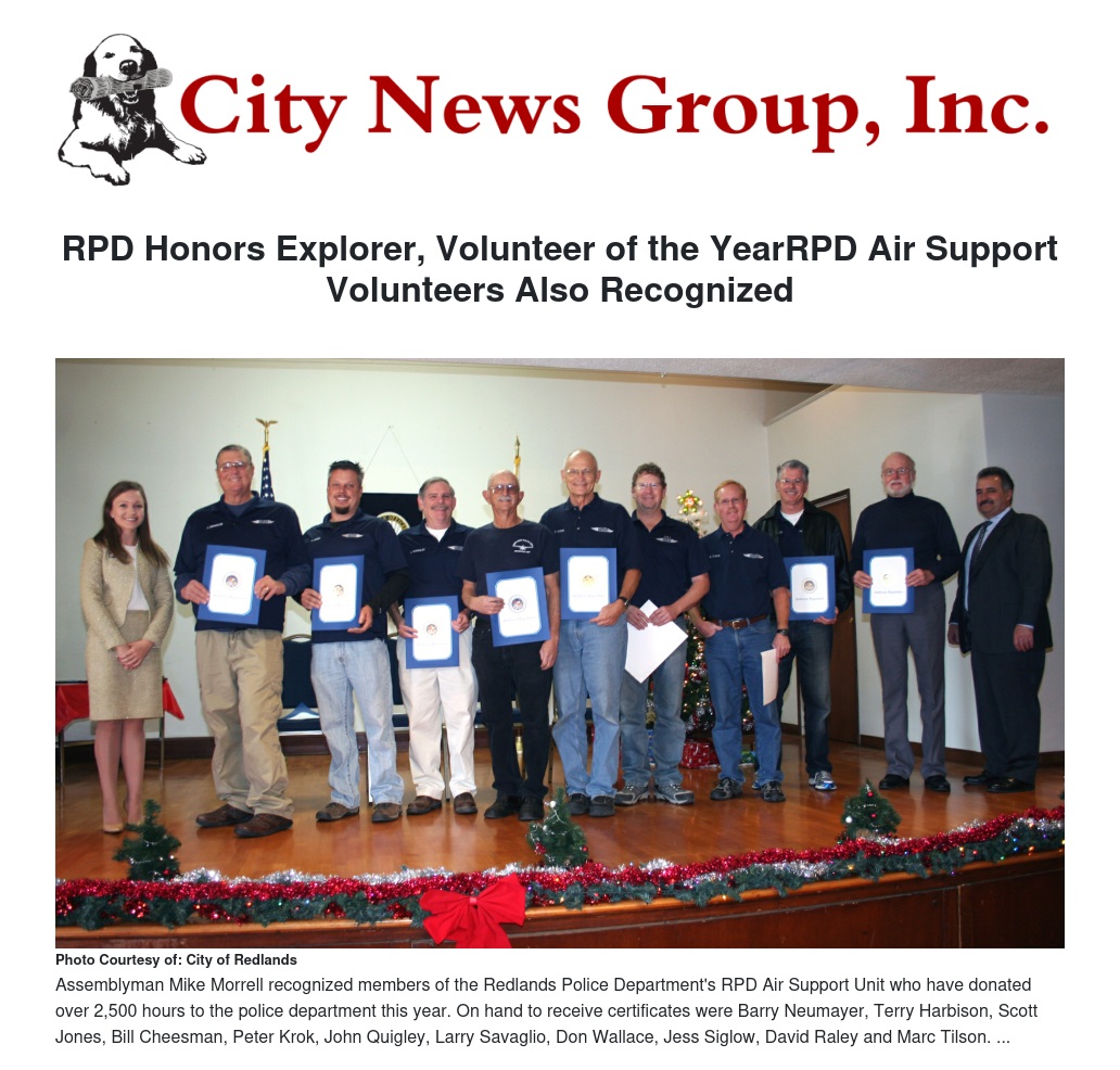 Be sure to read the Redlands City News in coming editions to read more about individuals and businesses honored by the RPD at the Dec. 10 ceremony! Find us online at www.citynewsgroup.com > Redlands.