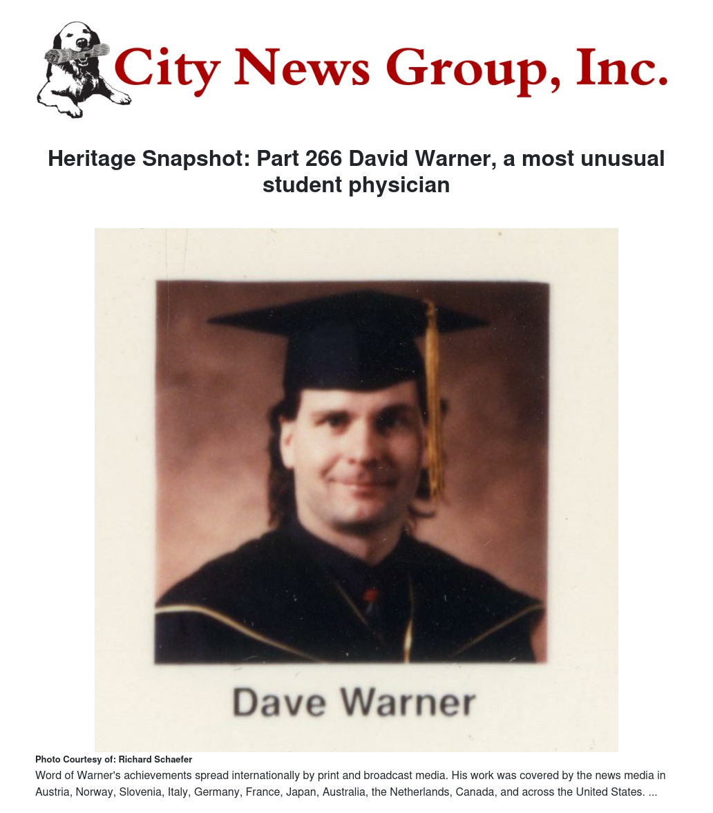 Heritage Snapshot: Part 266 David Warner, a most unusual student physician by Richard Schaefer - City News Group, Inc.